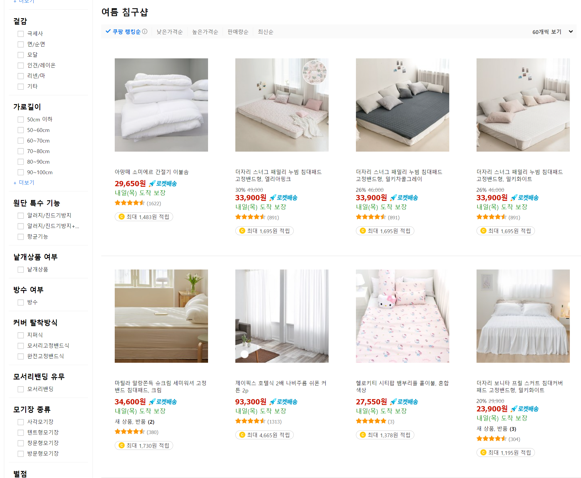 | (임의 번호) 1 | 아망떼 소미에르 간절기 이불솜 | 29,650 | Y | 1,622 |