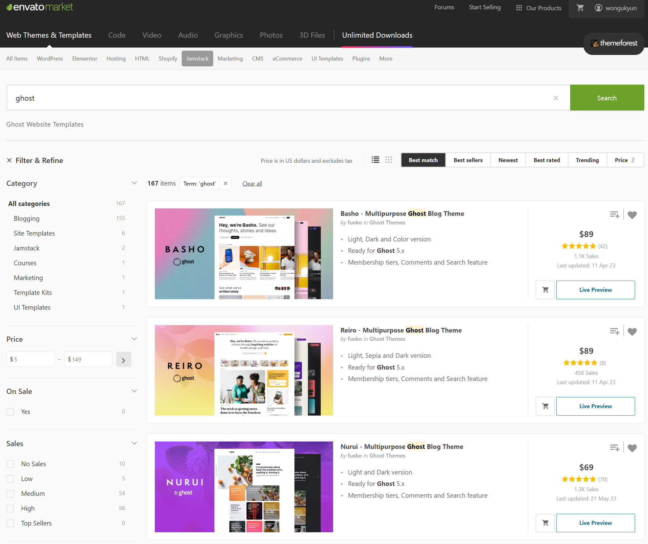 Kajabi를 소개할 때 핵심이 온라인 콘텐츠 사업을 위한 All-in-one 솔루션이라고 소개했었는데요, Ghost는 마치 블로그를 위한 Kajabi 같다는 느낌이 들었습니다(프론트엔드 + CMS + Database를 다 내장하고 있고 이메일을 통한 CRM마케팅까지도 일정 부분 가능합니다). 콘텐츠를 작성하는 editor도 노션과 상당히 유사해서 러닝 커브가 거의 없었고(줄 띄어쓰기 할 때 html로 <br> 넣어줘야 한다는 점 빼고는 매우 만족합니다) 호스팅을 포함한 사이트 유지비용도 월 25달러로 매우 저렴합니다. 단점이라면 프론트엔드를 수정하기 위해서는 코드 편집을 해야 한다는 것인데요, 테마를 사용하면 이것도 큰 문제가 아니라서(테마의 설치에 대해서는 나중에 다루도록 하겠습니다) 크게 문제가 되지 않았습니다. 저는 유료 테마를 구입했지만 Ghost 자체적으로 제공하는 무료 테마도 한 10개 정도 있습니다.