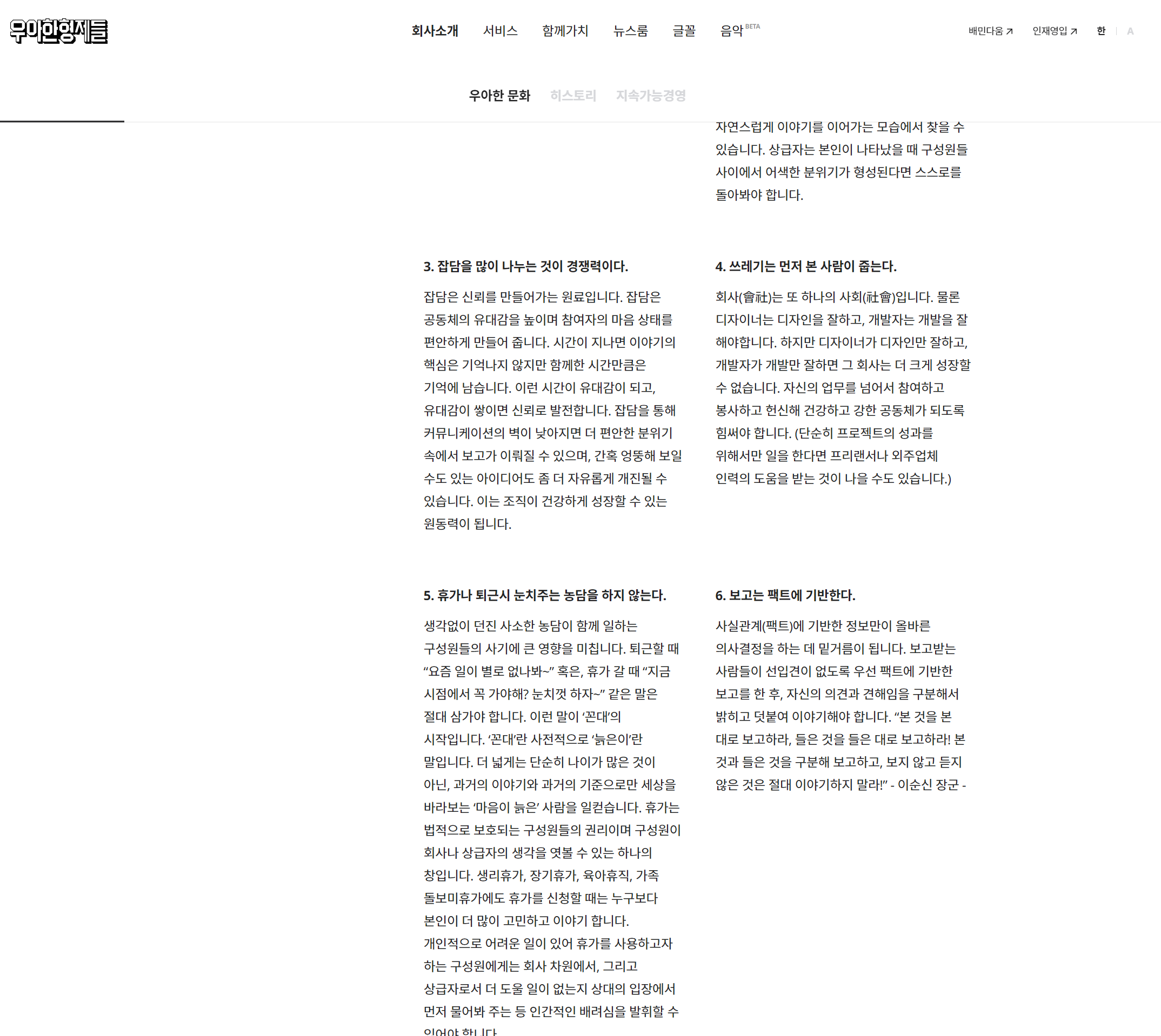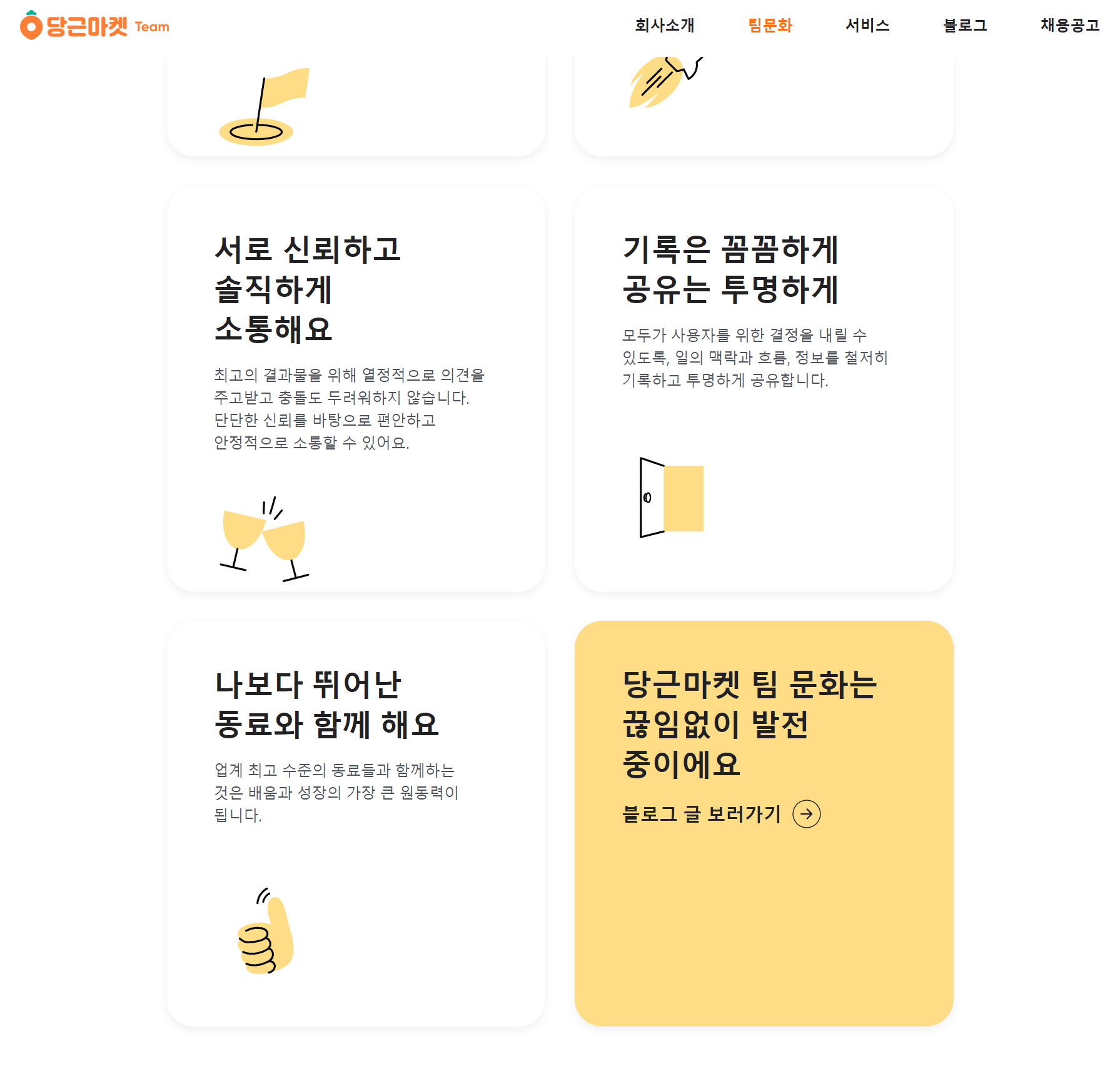 스타트업에서 일하다 보면 유난히 자주 마주치는 키워드가 ‘커뮤니케이션’입니다. ‘수평적 커뮤니케이션’, ‘열린 의사소통’, ‘솔직한 피드백’ 등 나타나는 형태는 매우 다양하지만 정말 많이 사용하는 것 같아요. 기업문화에서 강조하지 않더라도 인터뷰를 진행하다보면 회사에 지원하는 지원자 분들도 강점으로 커뮤니케이션을 꼽는 경우가 아주 많습니다.